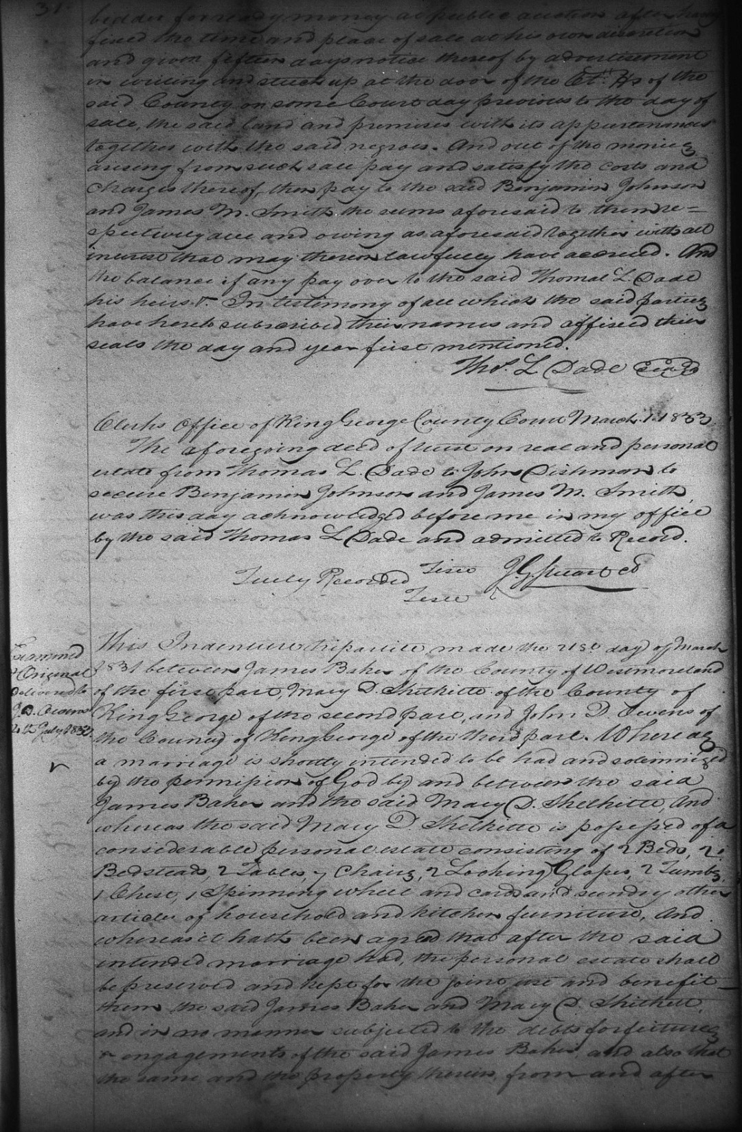 S0290--Deed--1831--King George Co. VA--Baker-Shelkitt marriage--p31