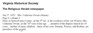 S0282--Obit--Religious Herald--1859--Catherine Owens
