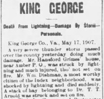 - [S404] "King George,"William Dishman, The Free Lance-Star, Fredericksburg, Virginia, 21 May 1907, p.3 c.4 (https://www.newspapers.com/image/866687182 : accessed 22 May 2025); citing Newspapers.com.