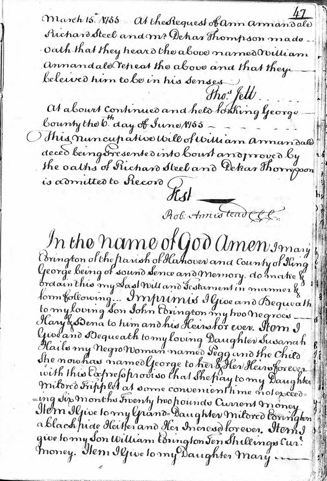 - [S608] King George County, Virginia, Will Book, Vol. 1, 1752-1780: pp. 47-49, Mary Edrington will, 25 Jun 1754; imaged, Virginia, U.S., Wills and Probate Records, 1652-1900, Ancestry (https://www.ancestry.com/search/collections/62347/): accessed 28 Jan 2026)https://www.ancestry.com/imageviewer/collections/62347/images/007644937_00117.