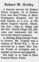 - [S738] "Obituaries,"Robert W. Grigsby, The Free Lance-Star, Fredericksburg, Virginia, 5 Feb 1972 (https://www.newspapers.com/image/1141862791 : accessed 12 May 2025); citing Newspapers.com.
