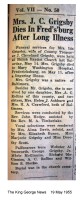 S0750 - King George News - 19 May 1955 - Ida Grigsby obituary