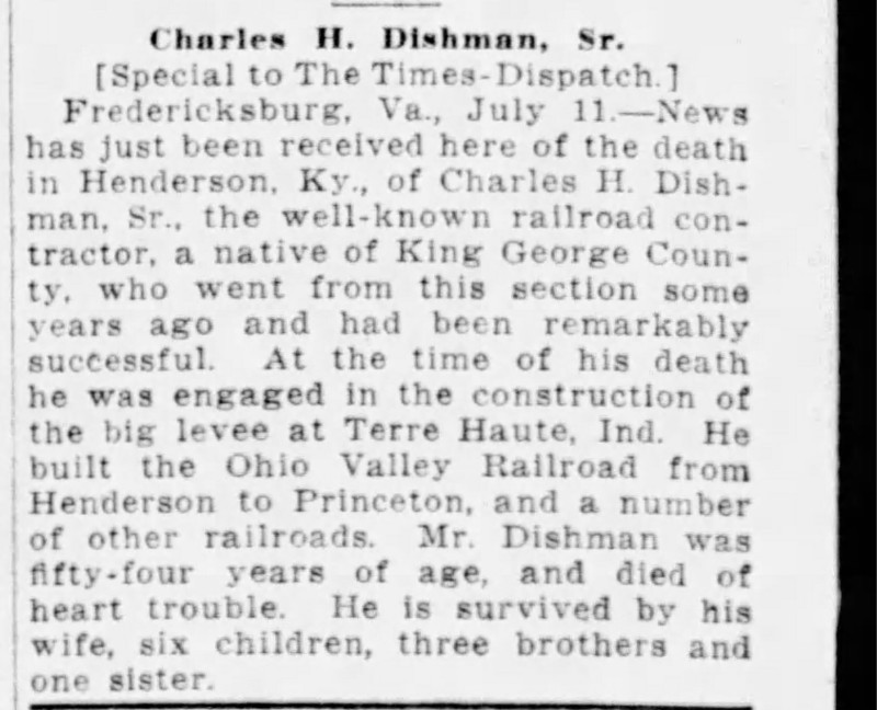 S0775--Obit--1913-07-12--Richmond_Times_Dispatch--Charles H. Dishman
