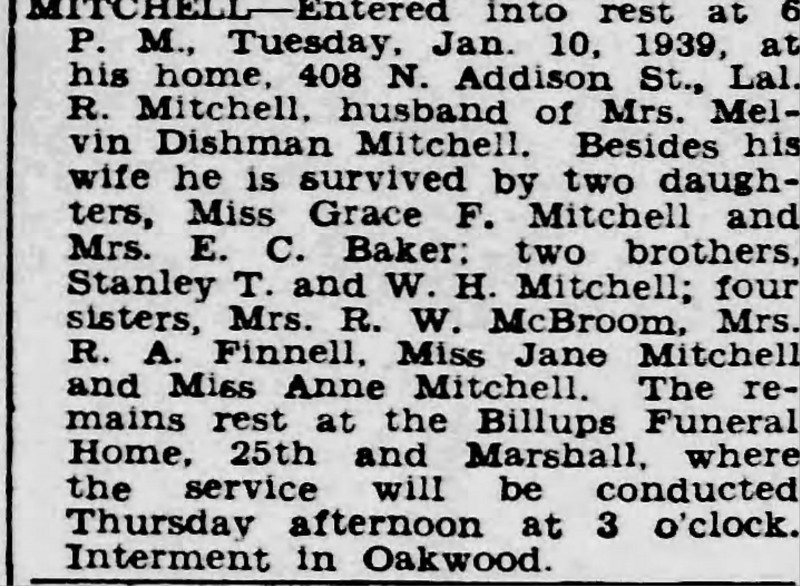 S0787--Obit--1939-01-12--Richmond_Times_Dispatch--Lal R. Mitchell