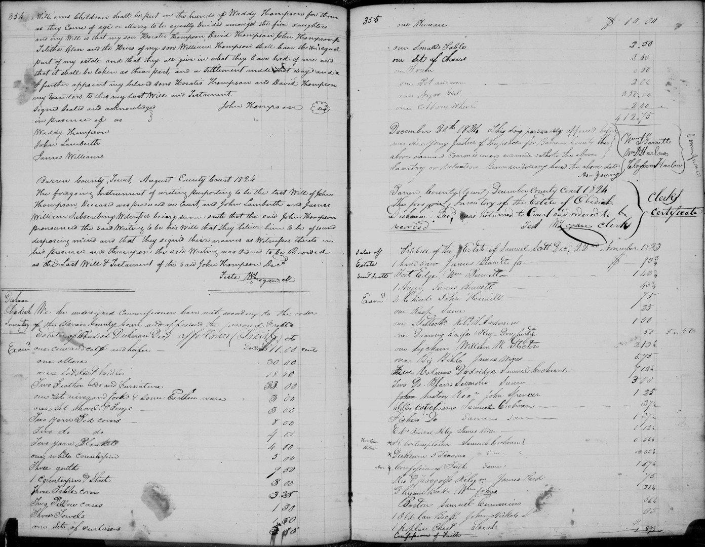 - [S959] Barren County, Kentucky, Will Book 2, 1817-1829: pp. 354-355, Obadiah Dishman inventory, 20 Dec 1824; imaged, FamilySearch, (https://www.familysearch.org/ark:/61903/3:1:33S7-9P32-9JL7): accessed 16 Apr 2025), image group number 4818752, image 482 of 626; citing original courthouse records.