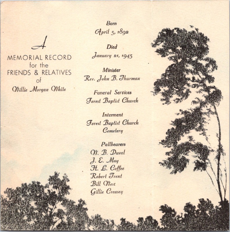 S1695-Funeral Card--Willie Morgan White