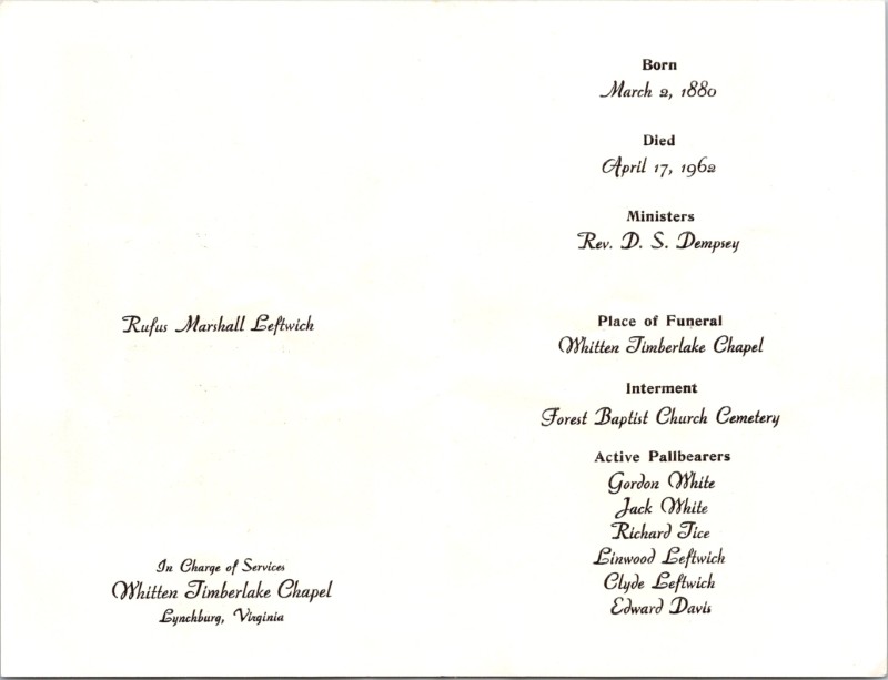 S1701-Funeral Card--Rufus Marshall Leftwich