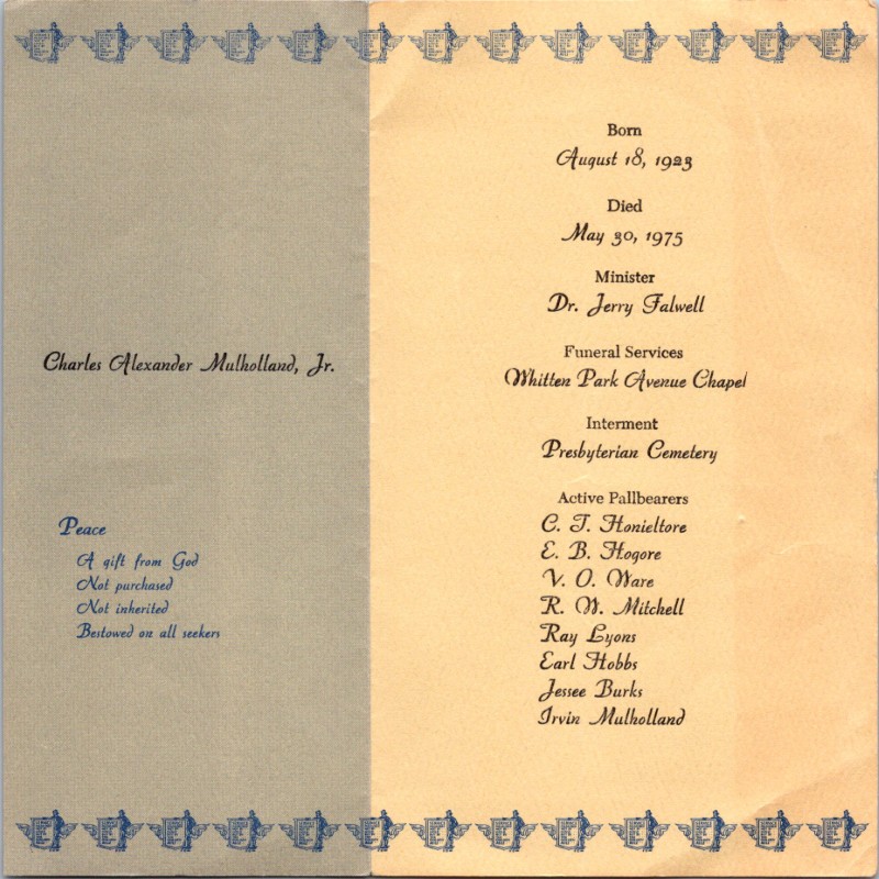 S1707-Funeral Card--Charles Alexander Mulholland Jr