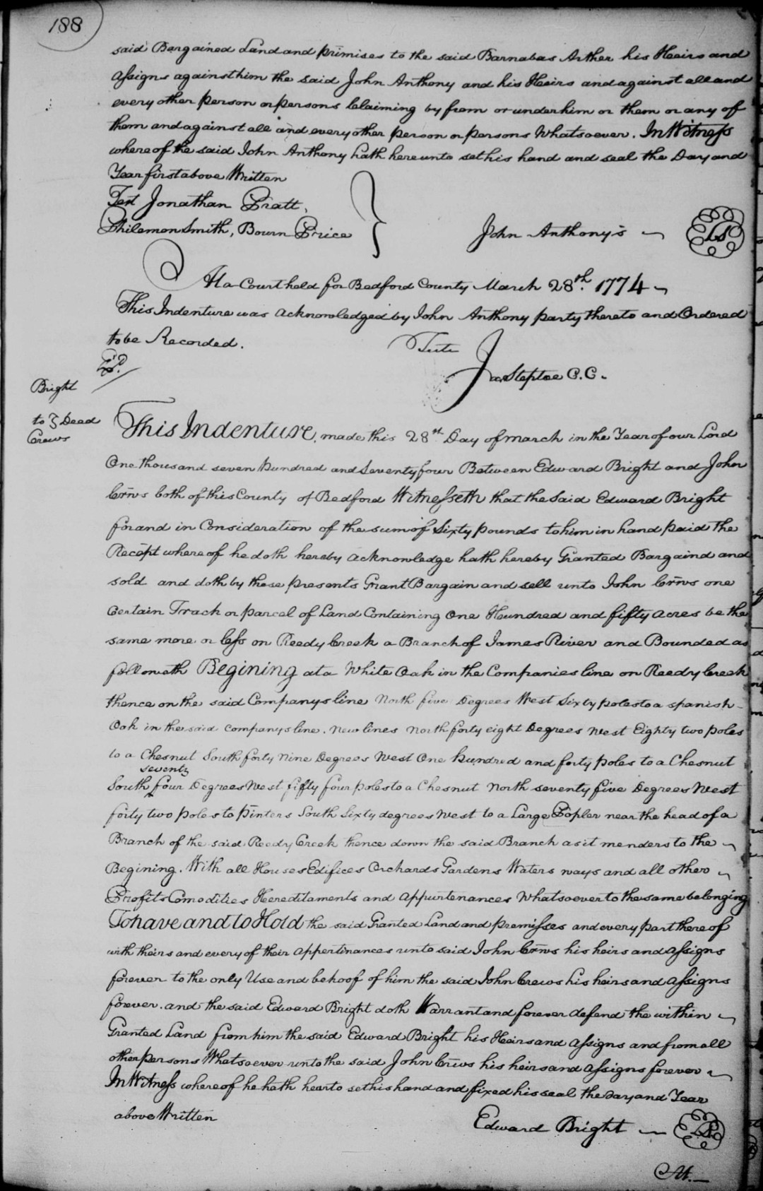 S2001--Deed--1774--Bedford Co. VA--Bright to Crews--p188
