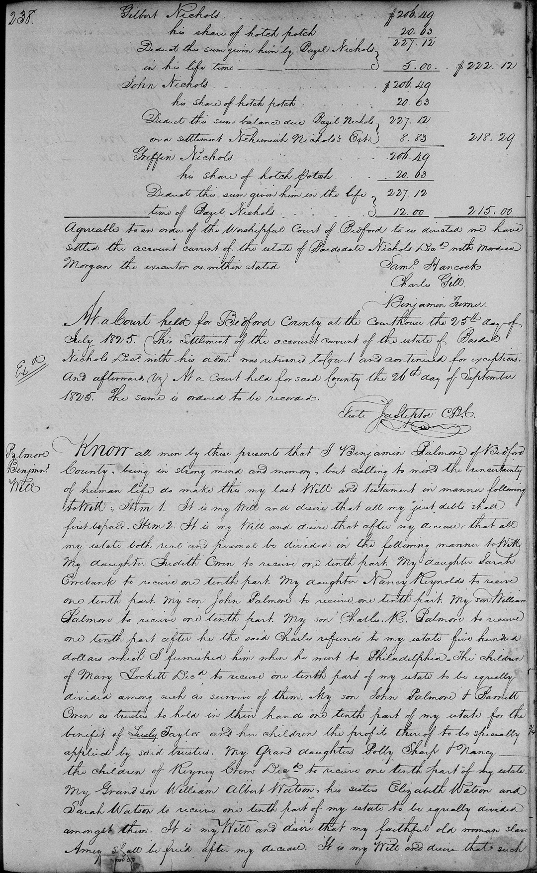 S2040--Will--1824--Bedford Co. VA--Benjamin Palmore--p238