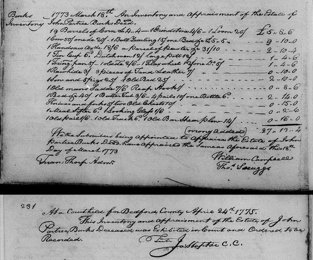 S2044--Inventory--1773--Bedford Co. VA--John Partree Burks
