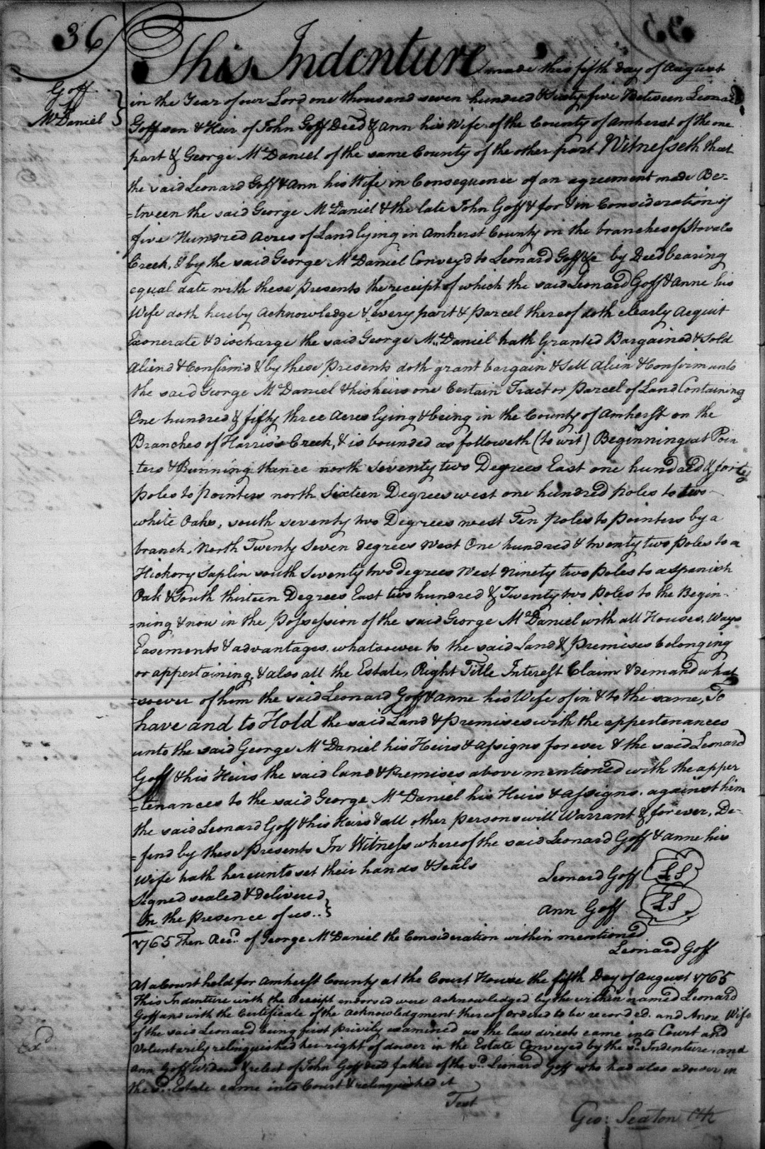 S2103--Deed--1765--Amherst Co. VA--Goff to McDaniel--p36