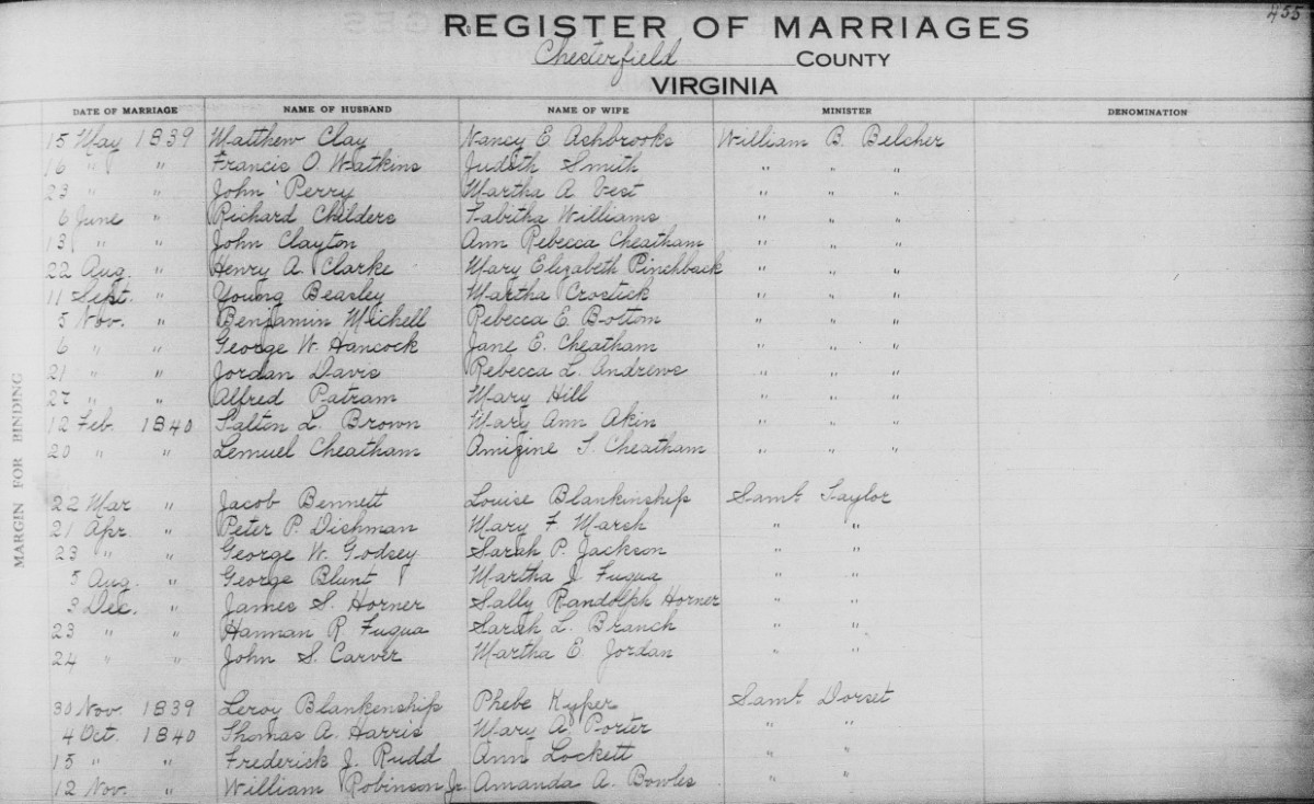 S0425--Marriage Record--1840--Chesterfield Co. VA--Dishman - Marsh