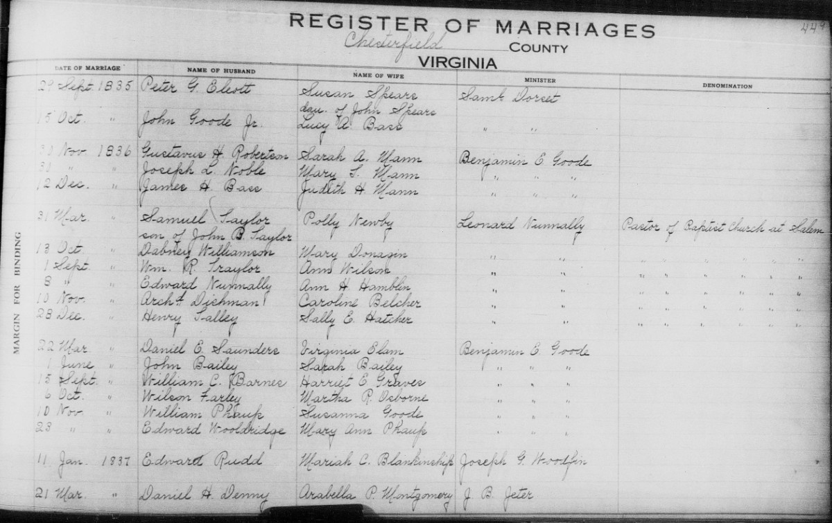 S1924--Marriage Record--1836--Chesterfield Co. VA--Dishman - Belcher