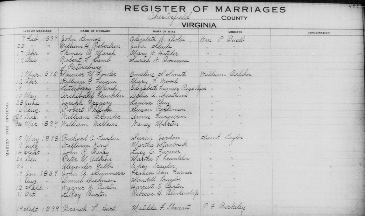 S1925--Marriage Record--1839--Chesterfield Co. VA--Dishman - Traylor