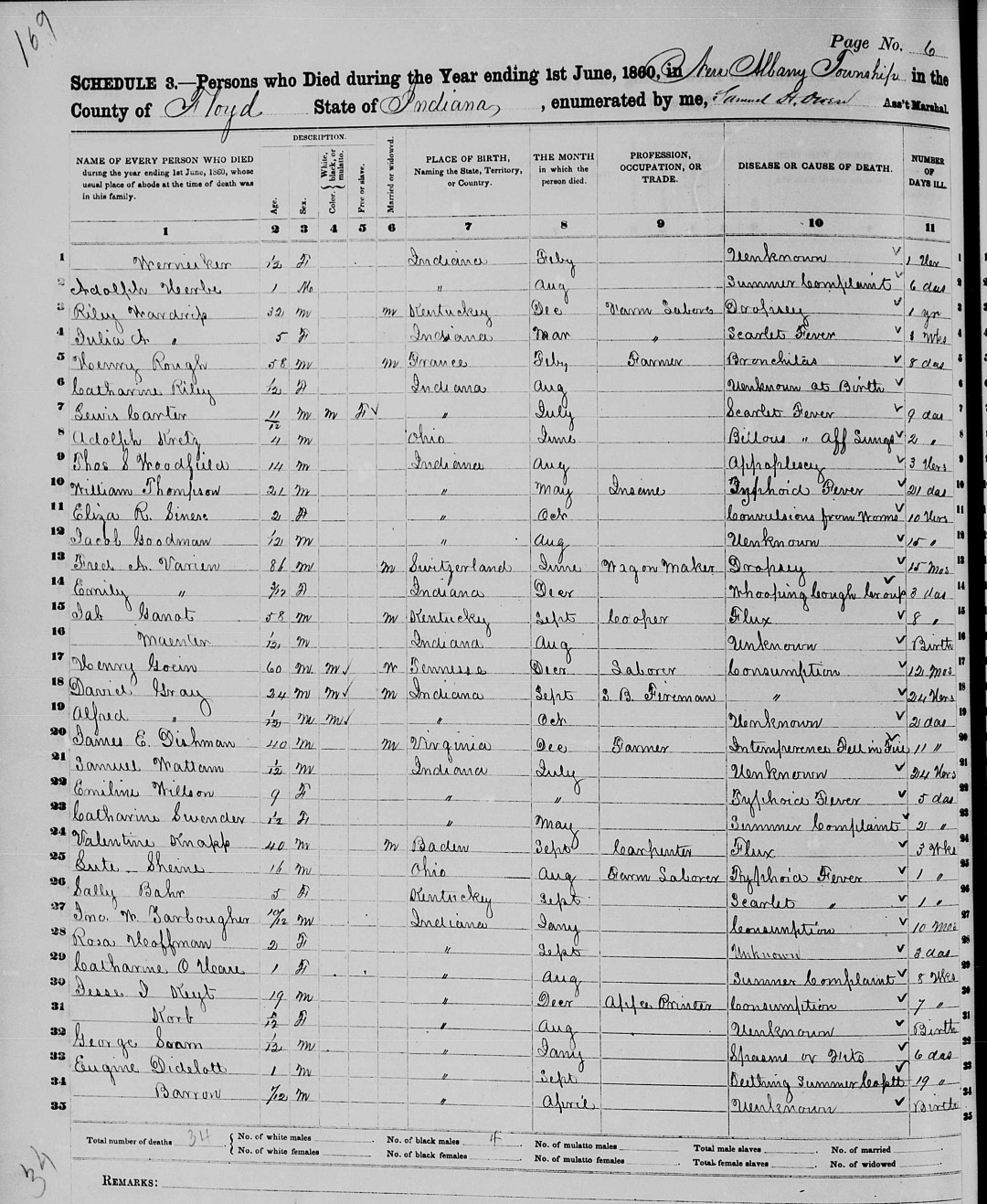 S0369--Mortality Schedule--1860--New Albany, Floyd County, Indiana--James E. Dishman