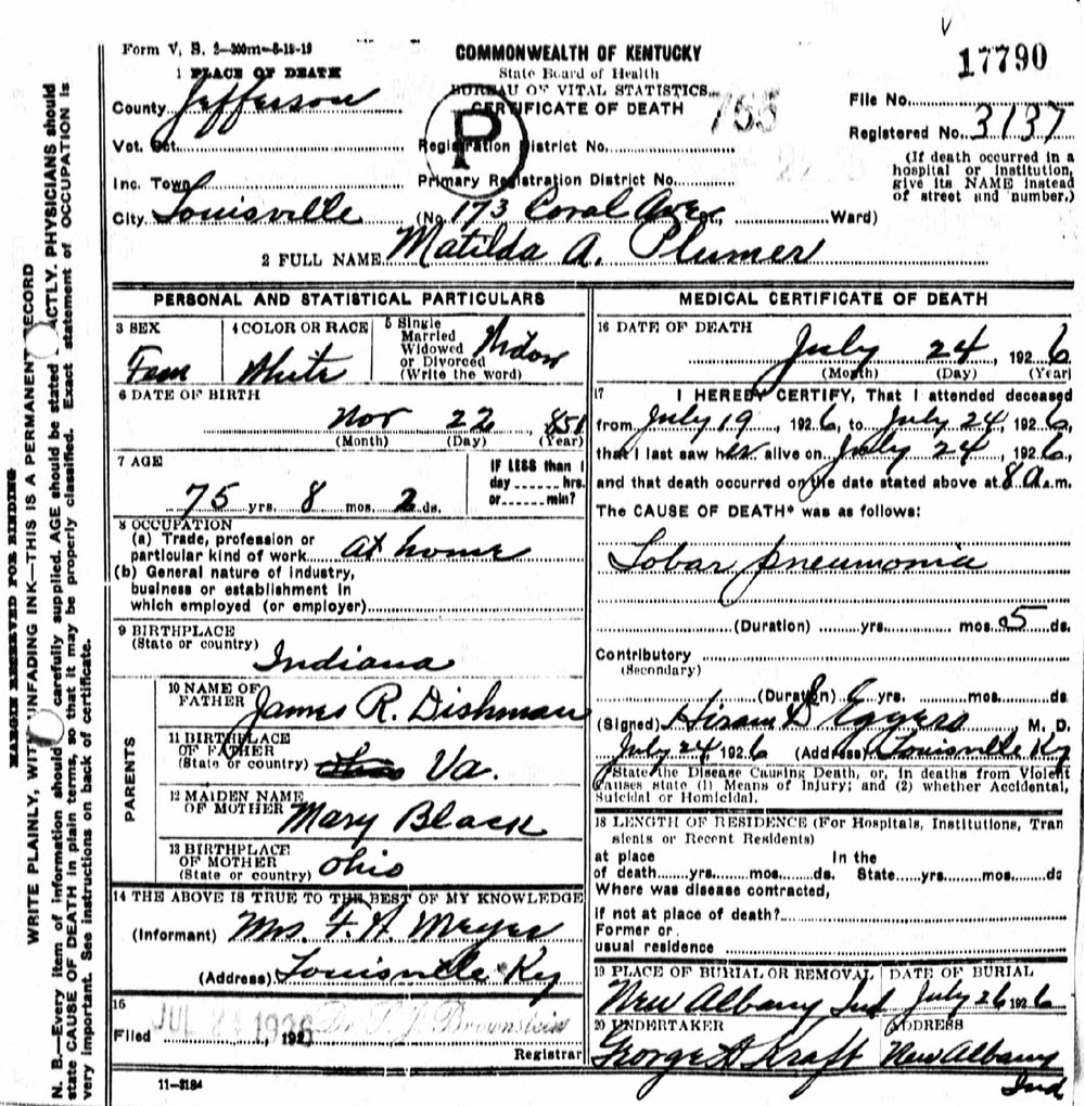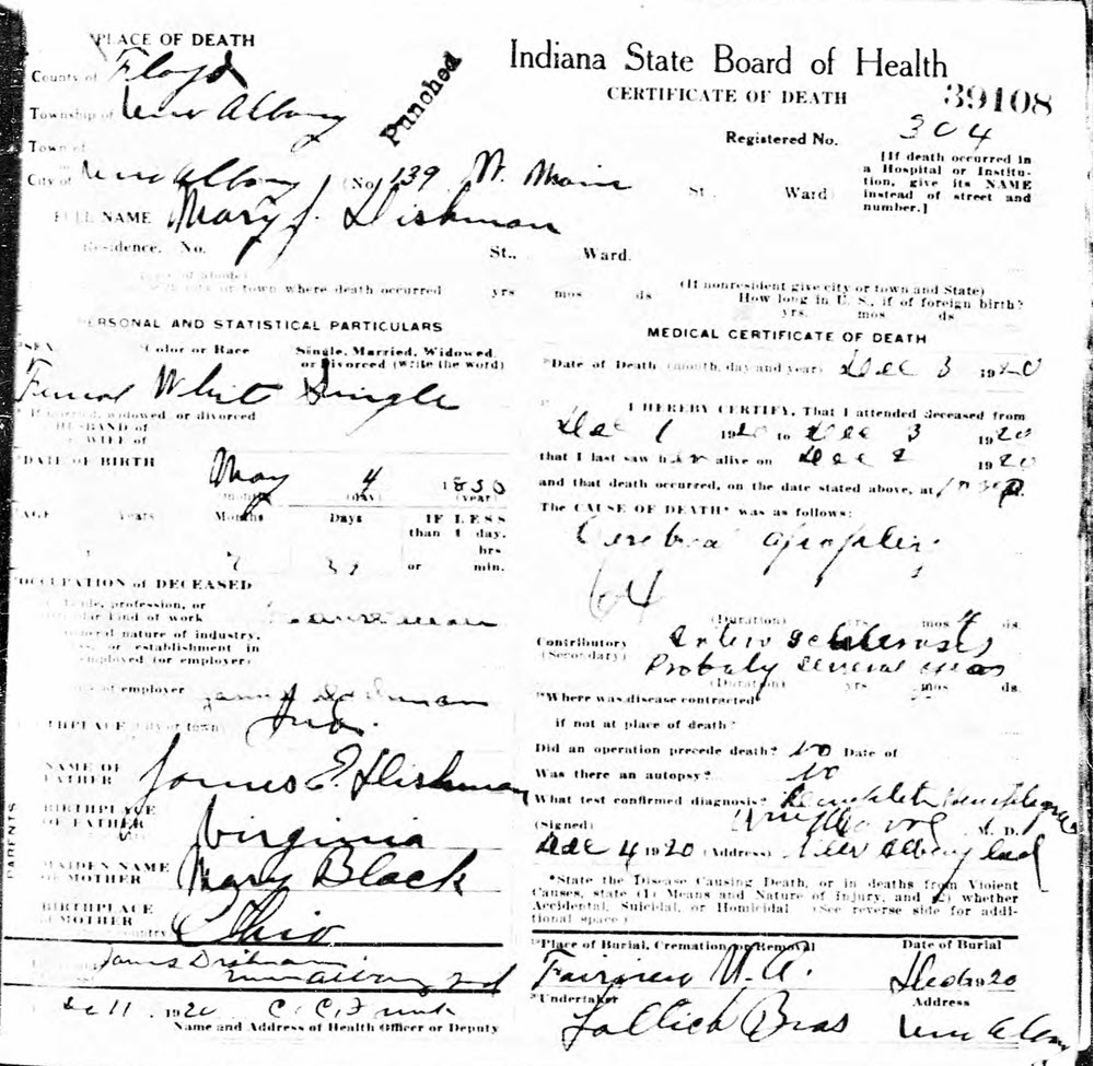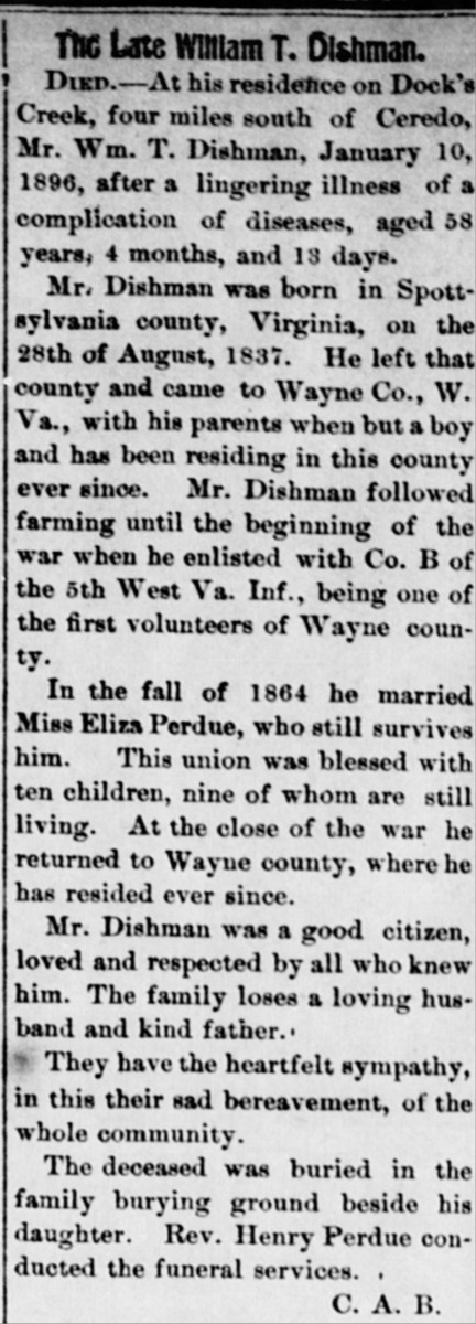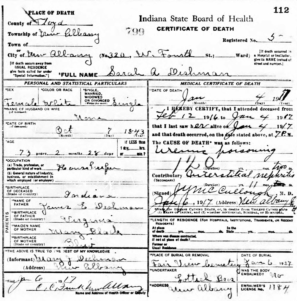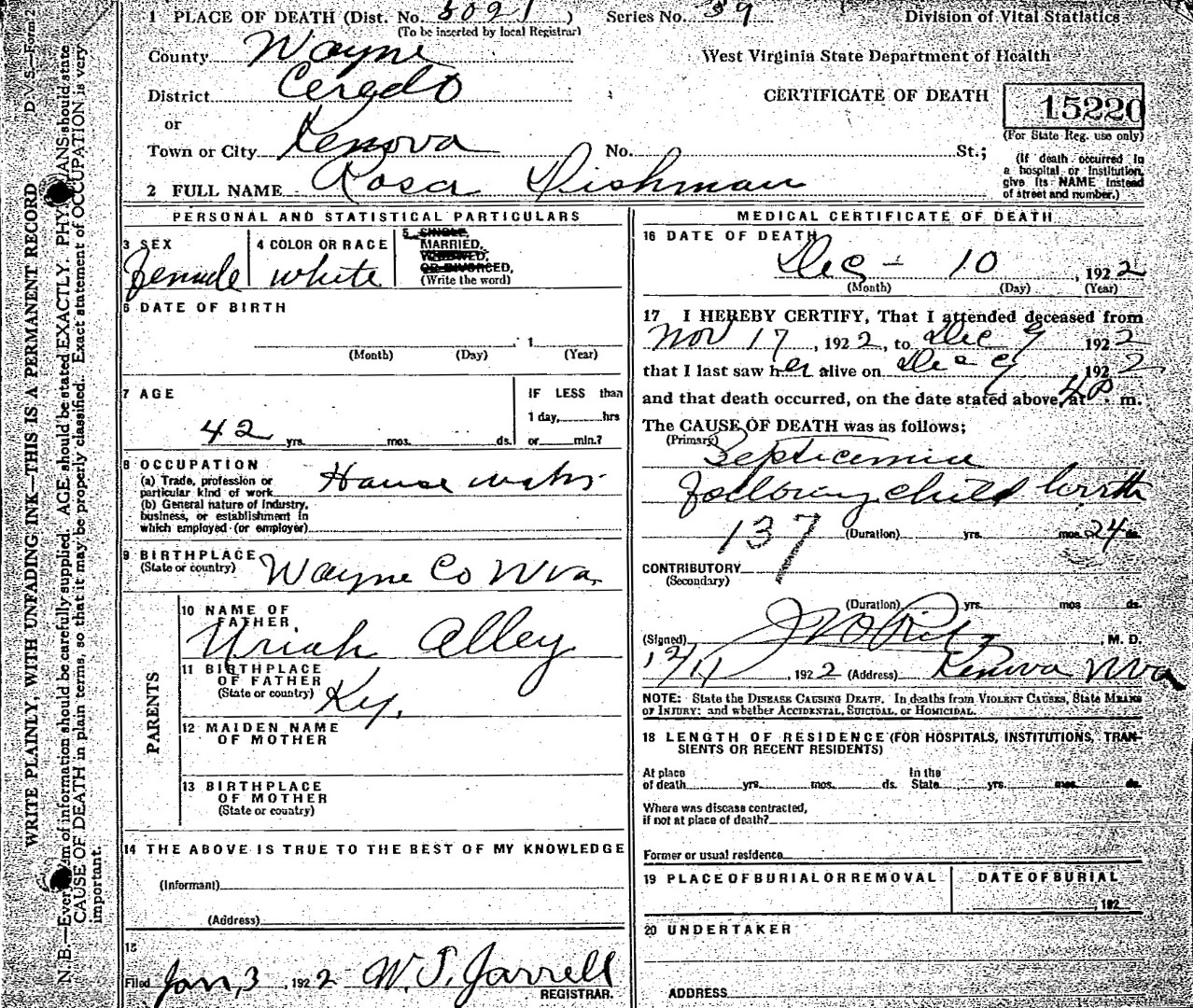 S1917--Death CErtificate--1922--Wayne Co. WV--Rosa Dishman