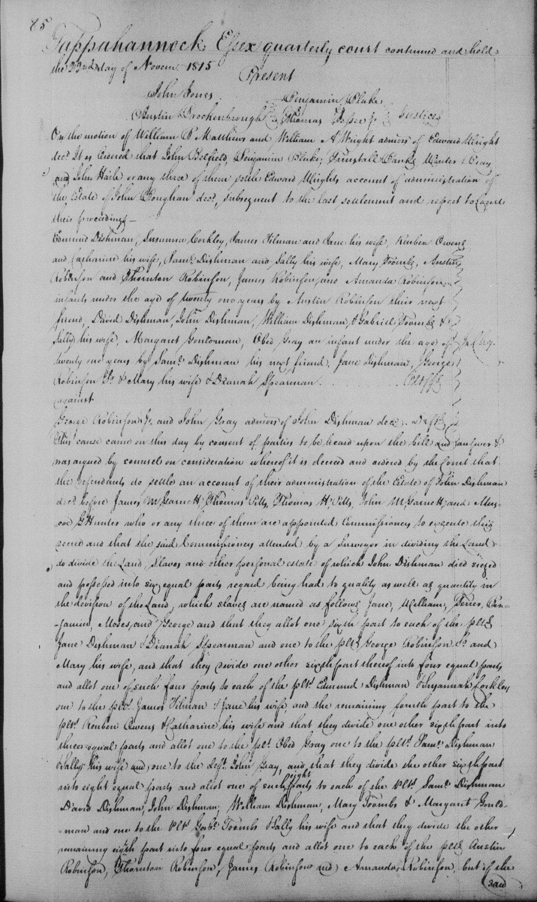 S0258--Court Order--1815--Essex Co. VA--John Dishman estate division--p85