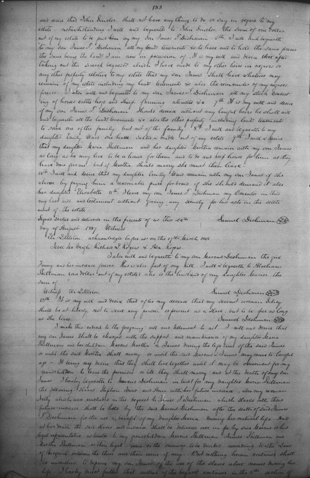 - [S310] Loudoun County, Virginia, Will Book 2-D with Inventories and Accounts, 1847-1850: pp. 132-134, Samuel Dishman will and codicil, 24 Aug 1847; imaged, FamilySearch (https://www.familysearch.org/ark:/61903/3:1:3QS7-99P6-B99M?view=explore&groupId=M9DL-SFM&lang=en): accessed 19 Jan 2026), image group number 007645421 (Item 1 of 2), images 82-82 of 228.