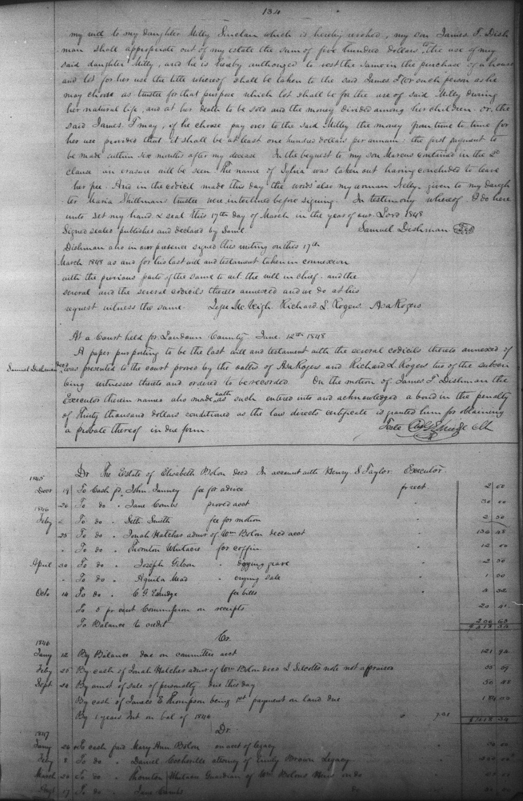 S0310--Will--1847--Loudoun Co. VA--Samuel Dishman--p134
