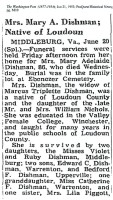 S0497 - Washington Post - 21 Jun 1958 - Mary A. Dishman obituary