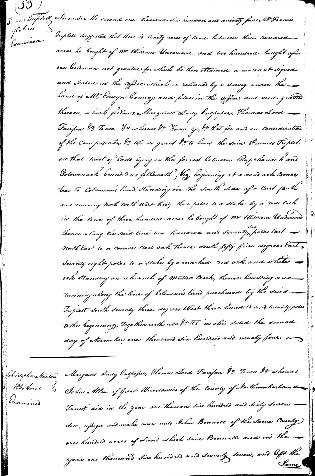 S0613--Land Grant--1694--Virginia--Francis Triplett--p53