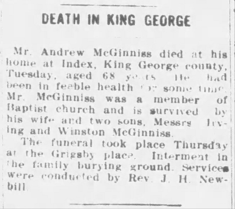 S0713--Obit--1912-06-01--Free Lance-Star--Andrew McGinniss