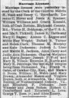 - [S505] "Marriage Licenses,"David Dishman and Minnie Noel marriage, The Washington Post, Washington, District of Columbia, 28 Jul 1887, p.4 (https://www.newspapers.com/image/1037708308 : accessed 29 May 2025); citing Newspapers.com.