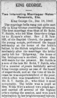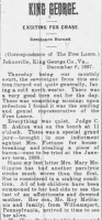 - [S733] "King George,"John S. McGinniss, The Free Lance-Star, Fredericksburg, Virginia, 23 Feb 1937 (https://www.newspapers.com/image/866589829 : accessed 7 Jan 2007); citing Newspapers.com.