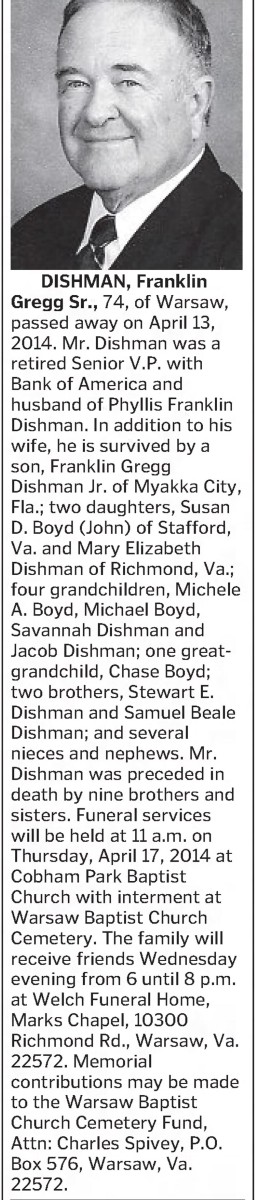 S0798--Obit--2014-04-15--Richmond_Times_Dispatch--Franklin Dishman