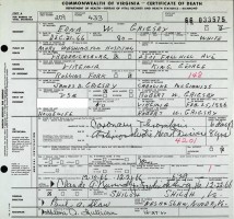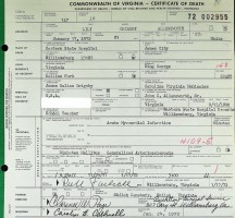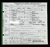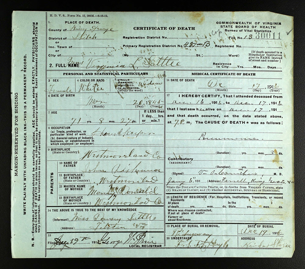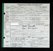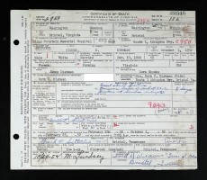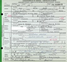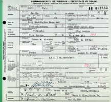 - [S945] Virginia L. Suttle, Certificate of Death no. 1360011 (1916), Department of Health, Bureau of Vital Statistics.