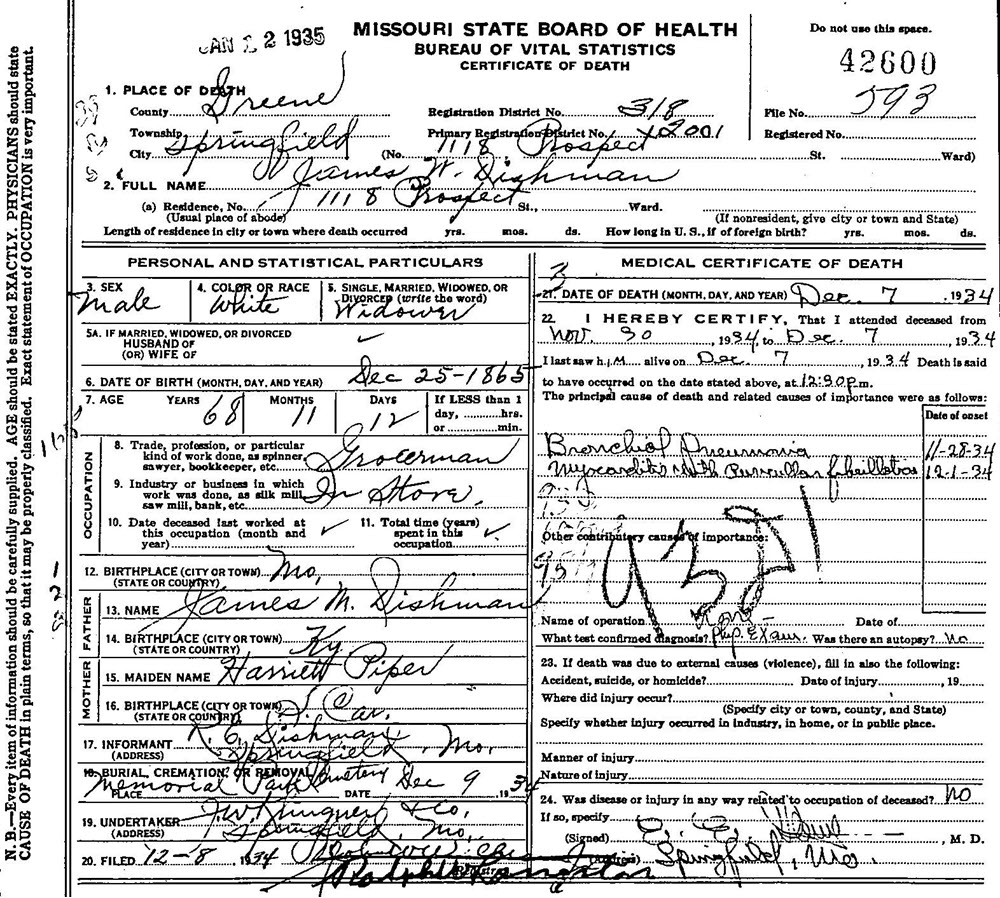 S0973--Death Cert--1934--Texas--J.H. Dishman