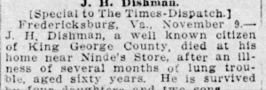 S0785--Obit--1912-11-10--Richmond_Times_Dispatch--J. H. Dishman