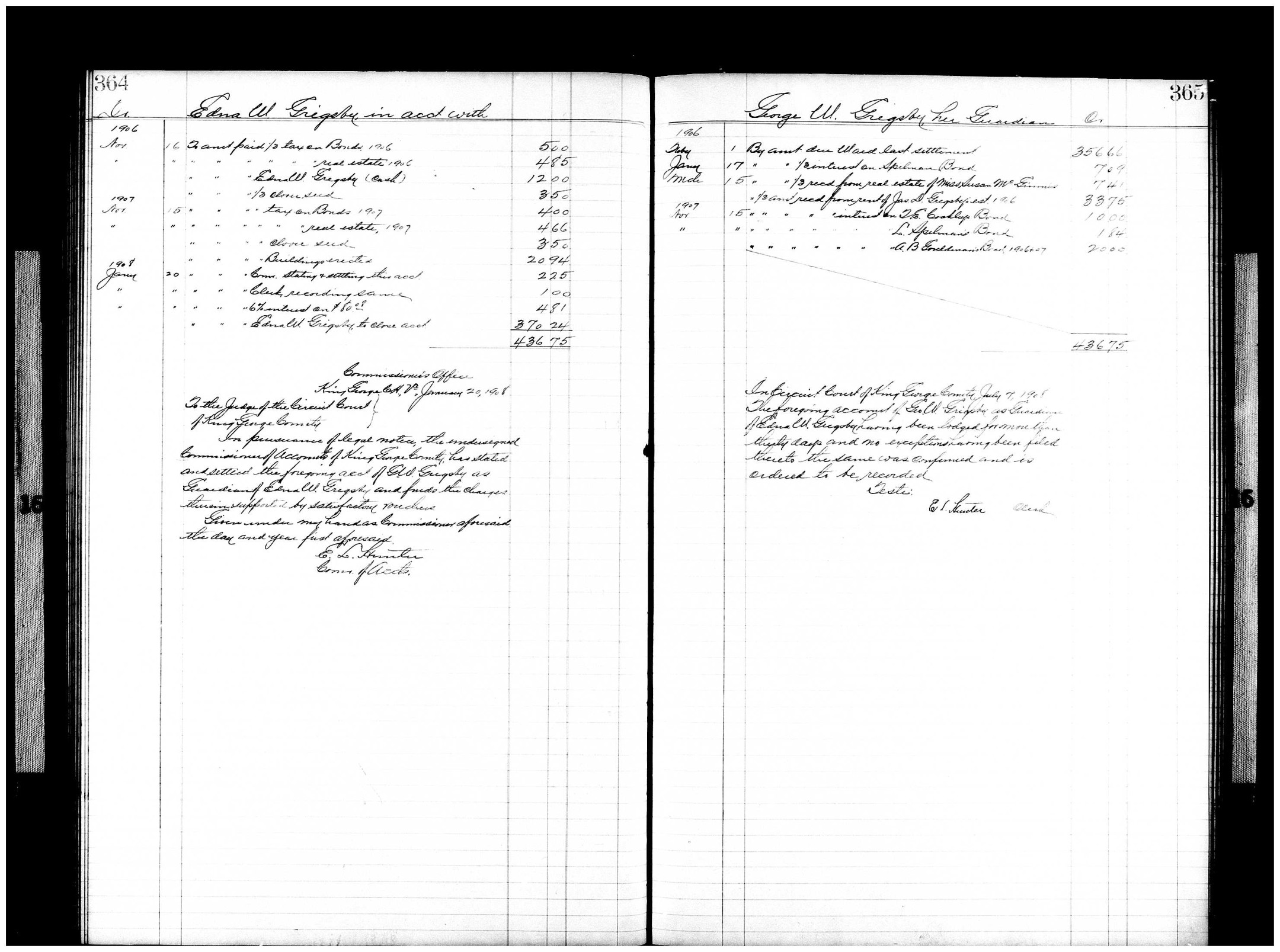 S0598 - Guardianship - 1906-1908 - Edna W. Grigsby - King George Co. VA