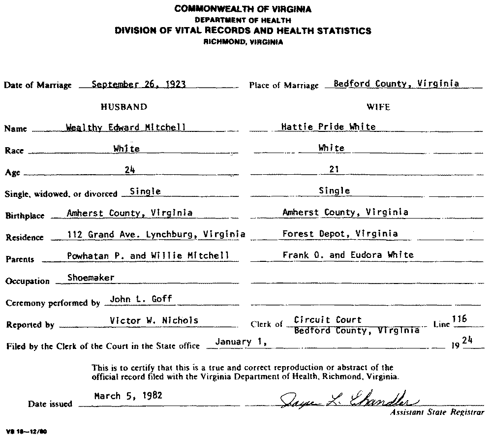 Mitchell and White Genealogy