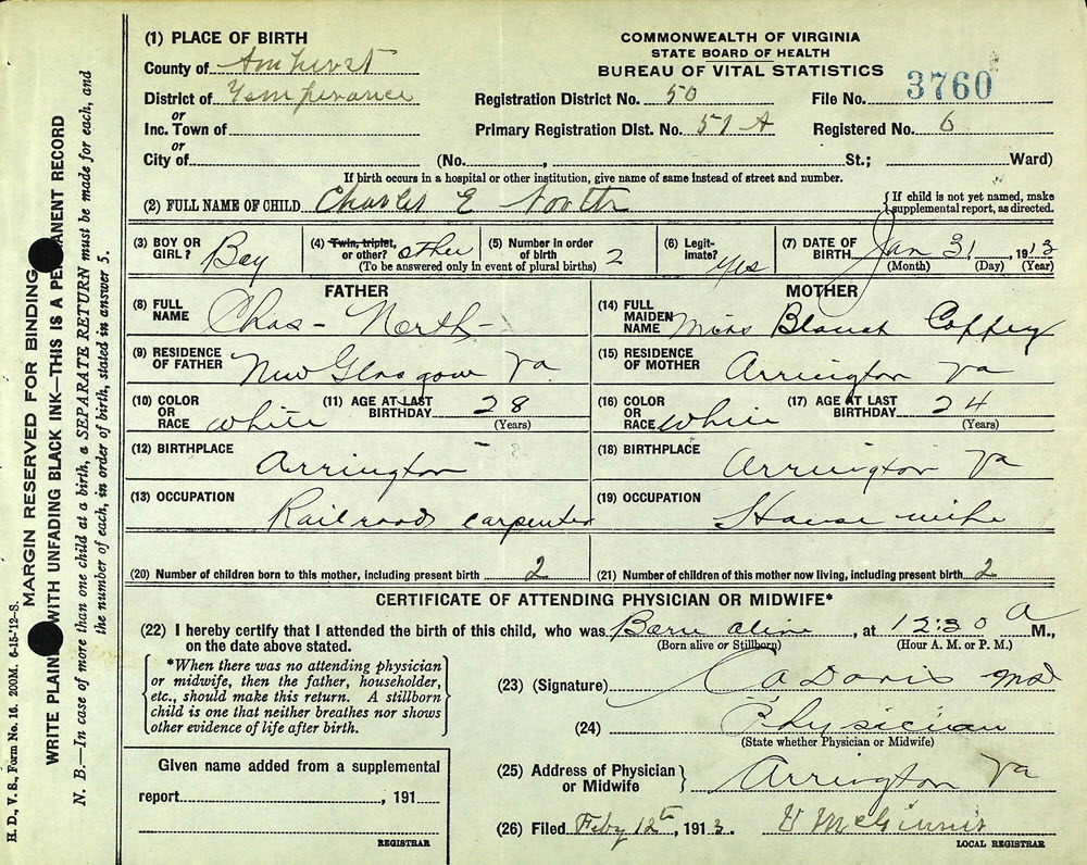 Birth Certificate, VA