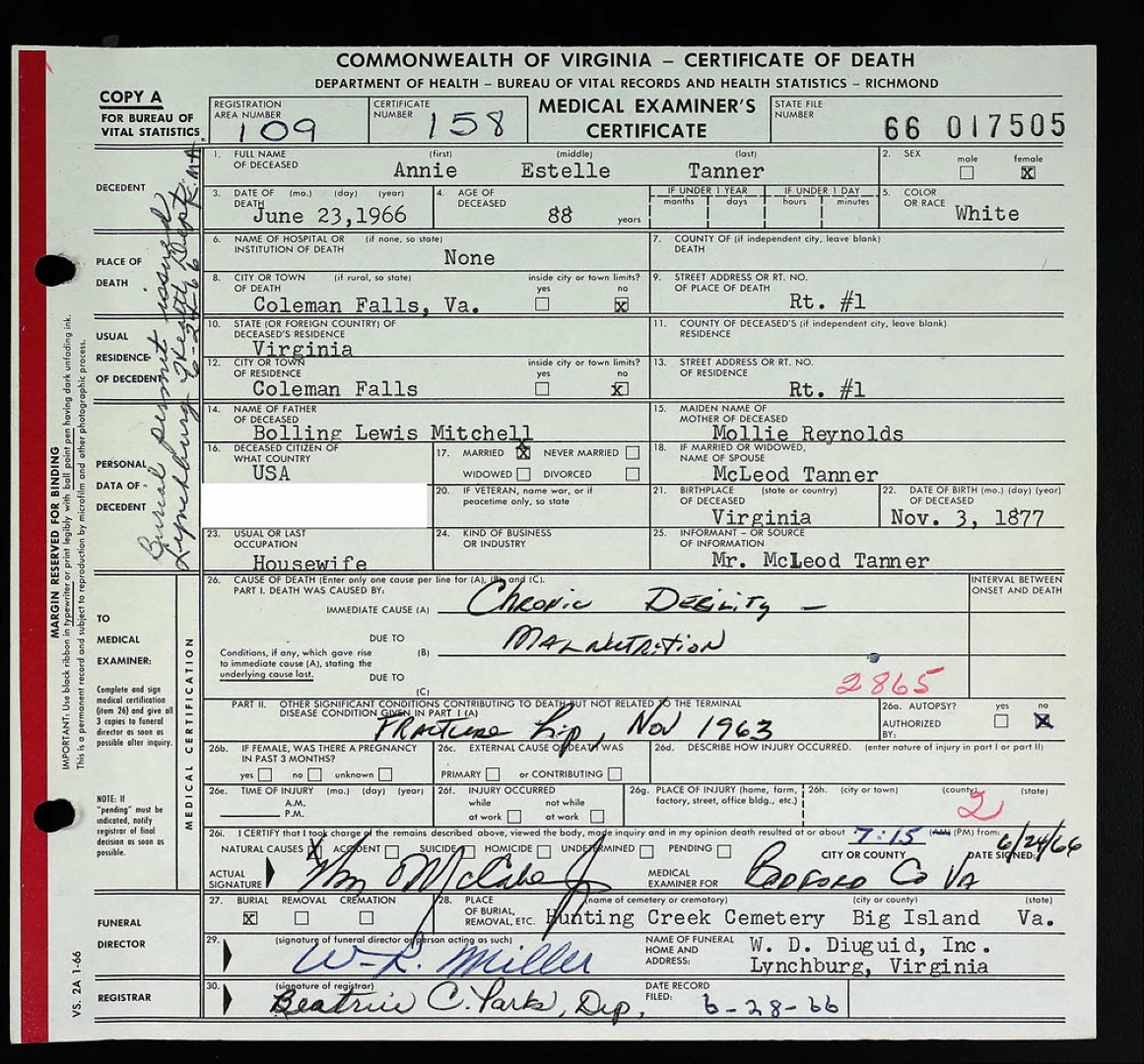 Death Certificate of