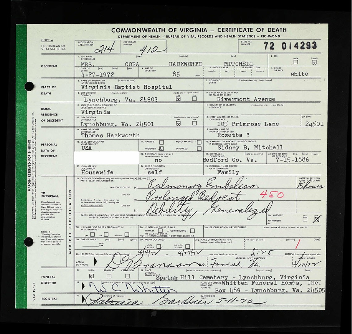 Death Certificate of