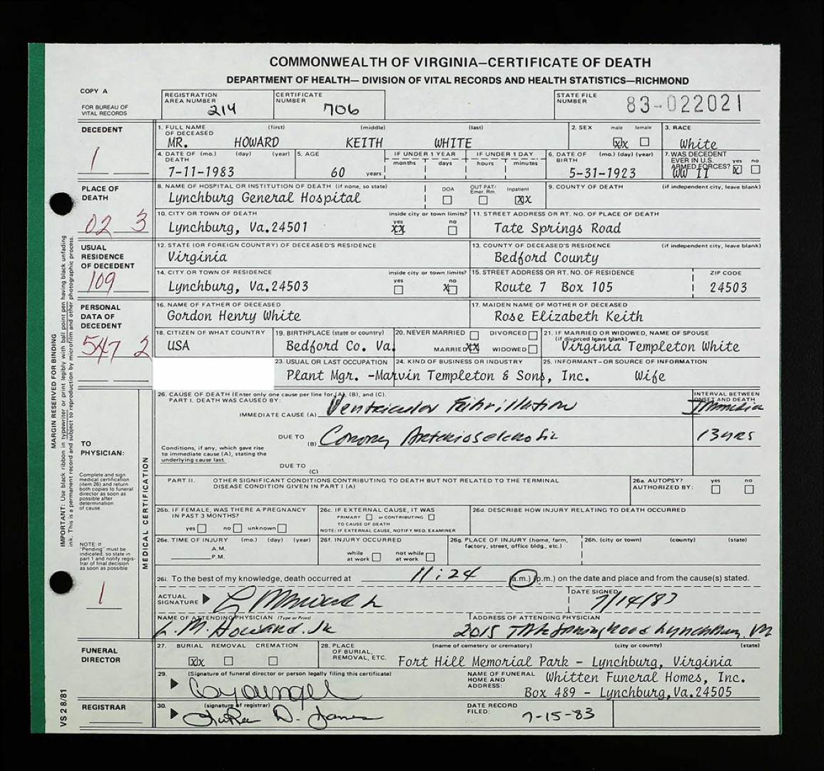 Death Certificate of