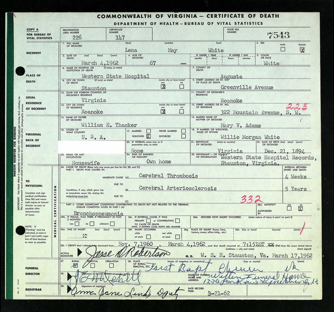 Death Certificate of