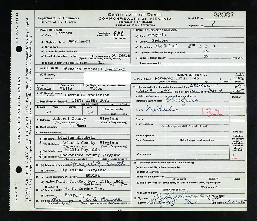 Death Certificate of