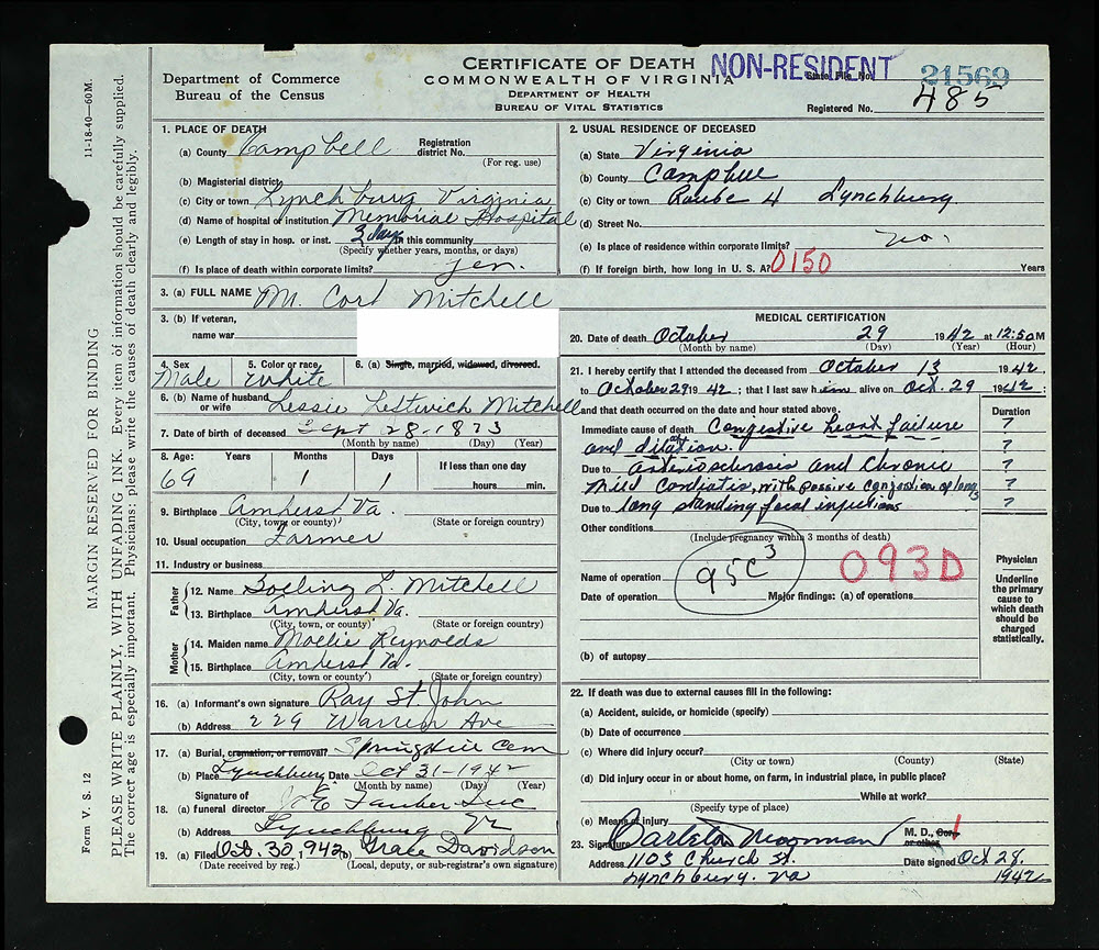 Death Certificate of