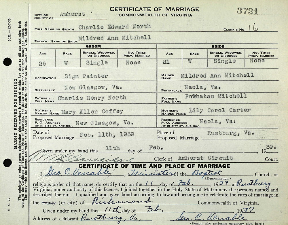 Charlie Edward North and Mildred Ann Mitchell