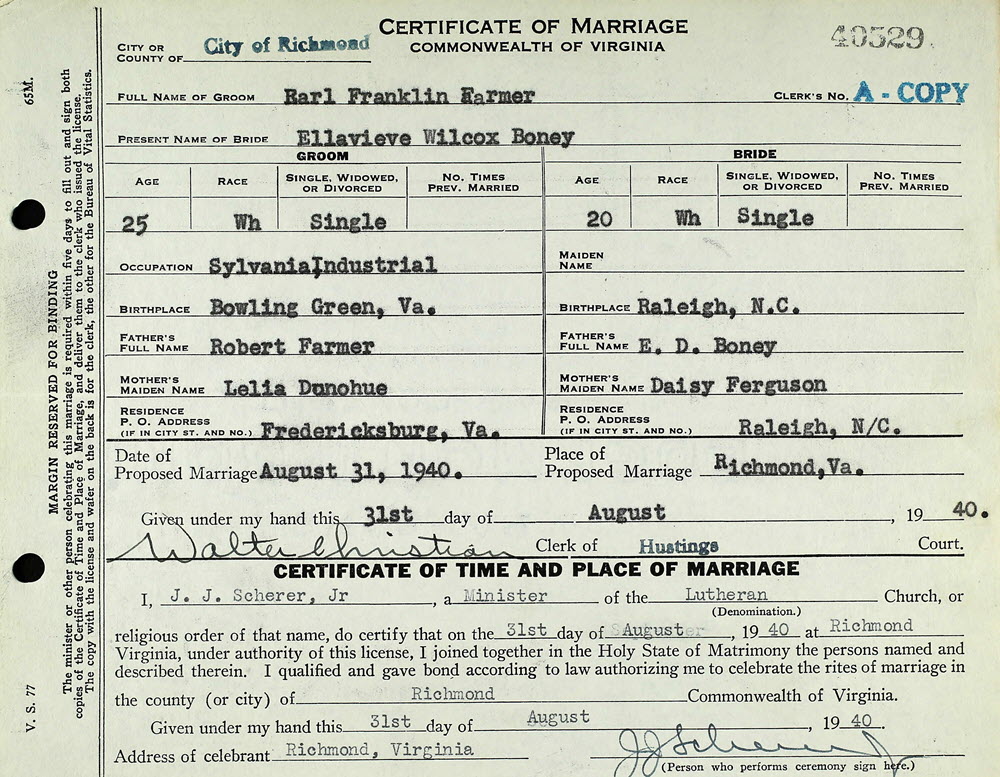 Earl Frankliin Farmer and Ellavieve Wilcox Boney
