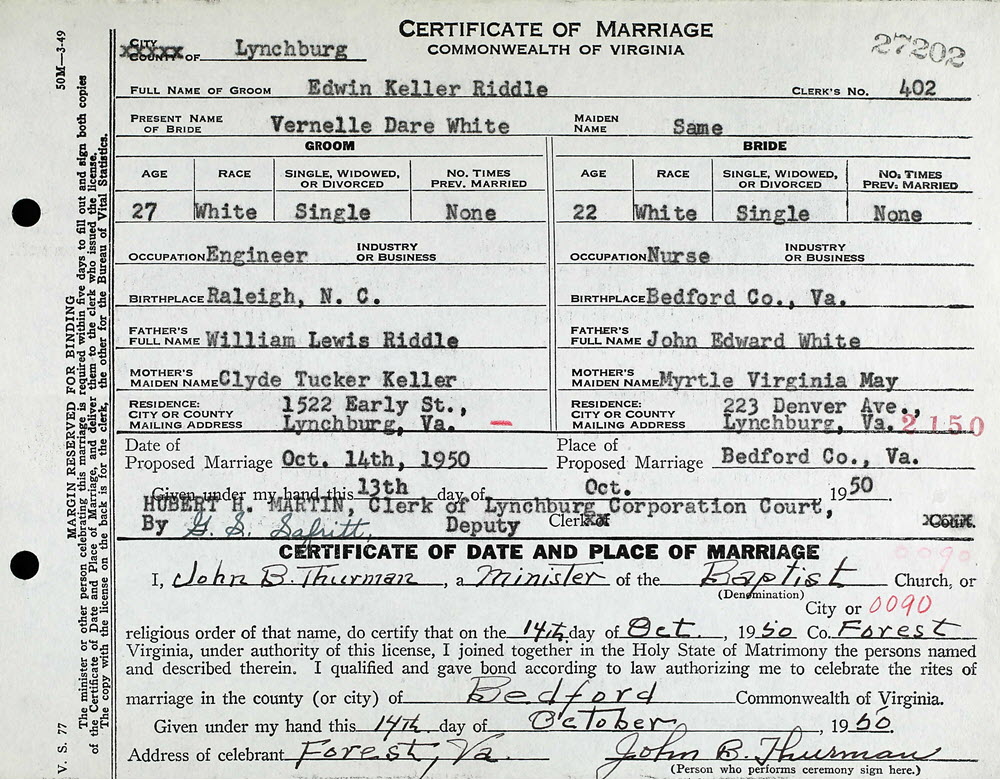 Edwin Keller Riddle and Vernelle Dare White