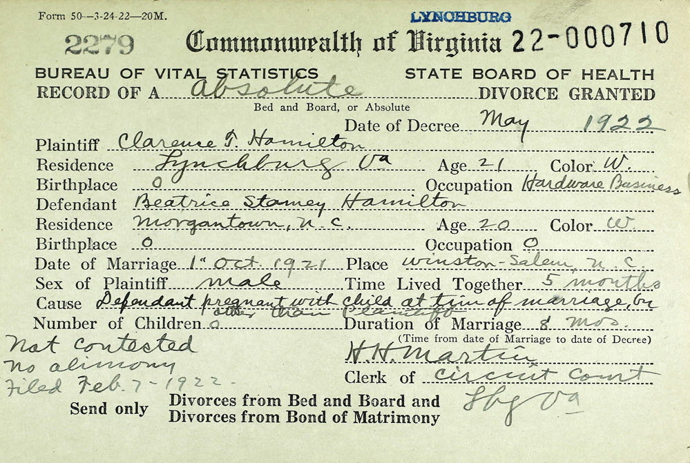 Clarence Hamilton vs Beatrice Stamey