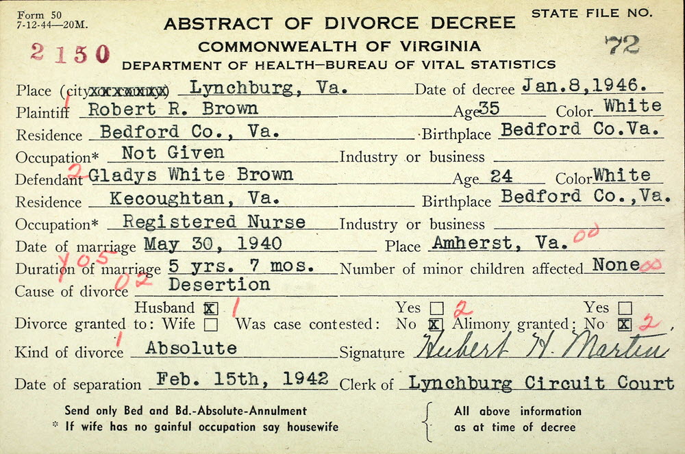 Robert R. Brown vs Gladys White Brown