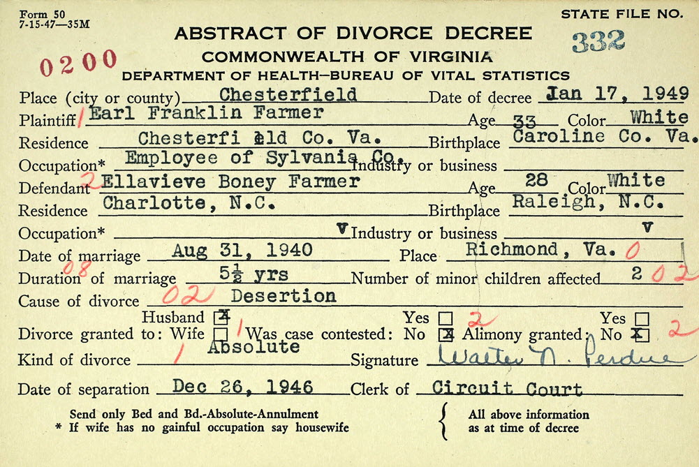 Earl Franklin Farmer vs Ellavieve Boney Farmer