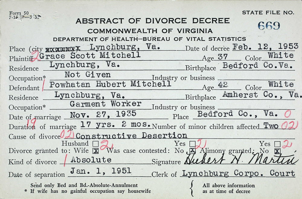 Grace Scott Mitchell vs Powhatan Herbert Mitchell