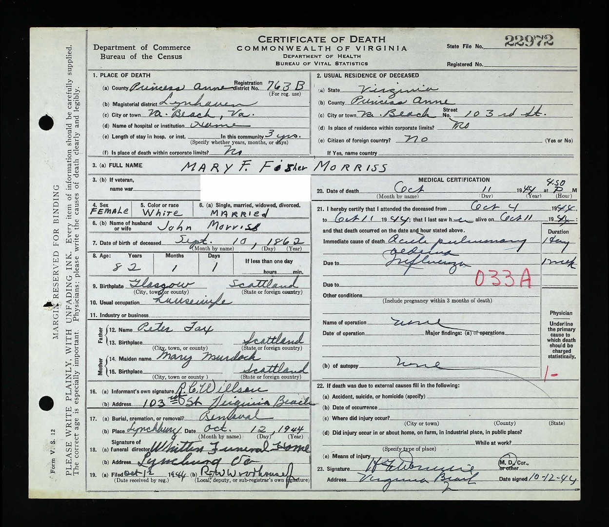 Mary F Fisher Morriss